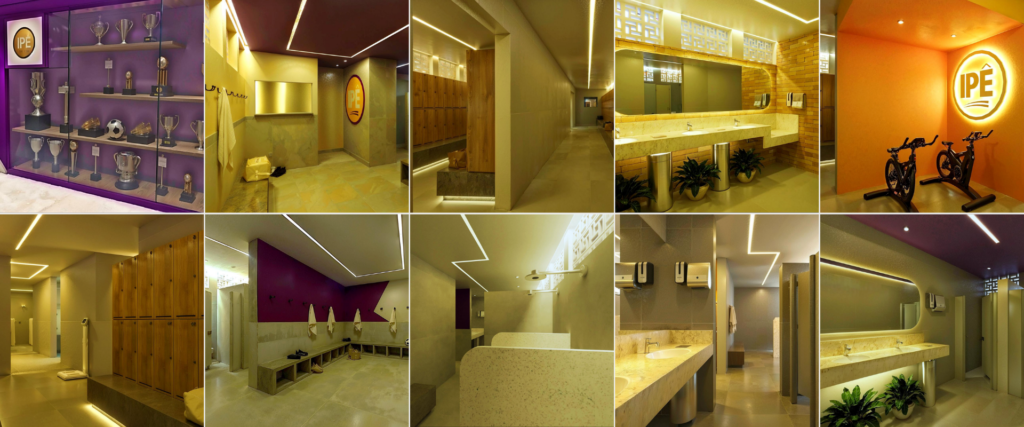 No projeto desenvolvido para o clube IPÊ, o conceito arquitetônico foi orientado pela história e pela identidade institucional da organização.